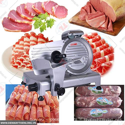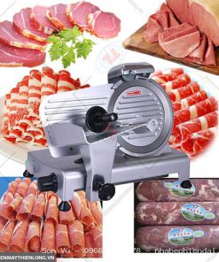Về thao tác sử dụng, máy thái thịt ba chỉ vận hành cực kỳ đơn giản. Bạn chỉ cần cầm miếng thịt ba chỉ tươi và thả trực tiếp xuống buồng cắt, máy sẽ tự động kéo nguyên liệu vào và chém ra những lát thịt đều tăm tắp chỉ trong tích tắc. Cách làm này giúp tiết kiệm tối đa thời gian sơ chế, đặc biệt phù hợp với những quán bán số lượng lớn mỗi ngày.