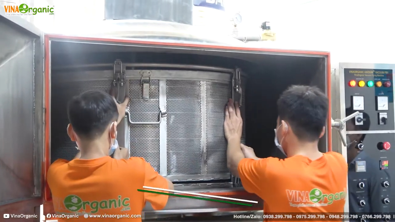 Công nghệ chiên chân không hiện nay đã không còn quá xa lạ đối với chúng ta. Những sản phẩm như rau củ quả sấy giòn, trái cây sấy giòn hay các loại snack nông sản mà chúng ta thường thấy trên thị trường đều được sản xuất nhờ công nghệ chiên chân không. Là đơn vị hàng đầu trong nghiên cứu và chế tạo máy chiên chân không tại Việt Nam, đội ngũ kỹ sư của VNOrganic đã không ngừng nghiên cứu, cải tiến và phát triển các dòng máy với nhiều mức công suất khác nhau. Trong đó có dòng máy chiên chân không công suất lớn lên đến 100kg nguyên liệu mỗi mẻ, được sản xuất để phục vụ cho dự án xuất khẩu sang thị trường Nhật Bản.