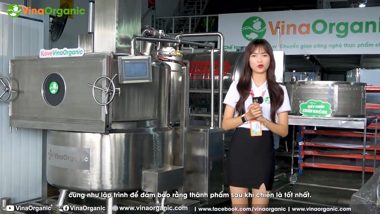 Công nghệ chiên chân không đã được VinaOrganic nghiên cứu và phát triển trong hơn 10 năm qua. Mục tiêu của công nghệ này là tạo ra những sản phẩm giòn xốp nhưng vẫn giữ được cấu trúc tự nhiên, màu sắc, hương vị và đặc biệt là giá trị dinh dưỡng của nguyên liệu ban đầu. Những kinh nghiệm và kết quả nghiên cứu trong suốt quá trình đó đã được áp dụng vào các phiên bản máy chiên chân không mà VinaOrganic sản xuất.