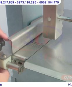Bàn cắt được làm từ inox dày khoảng 4 mm với kích thước lớn, có thể đặt nhiều nguyên liệu cùng lúc. Bề mặt bàn phẳng, nhẵn và sáng bóng nên rất dễ vệ sinh sau khi sử dụng. Trên mặt bàn có vạch chia kích thước từ 0 đến 10 cm giúp người dùng dễ dàng căn chỉnh độ dày của lát cắt một cách chính xác. Hệ thống thanh điều chỉnh cho phép thay đổi linh hoạt độ dày lát cắt từ 0 đến 10 cm, phù hợp với nhiều nhu cầu cắt khác nhau.
