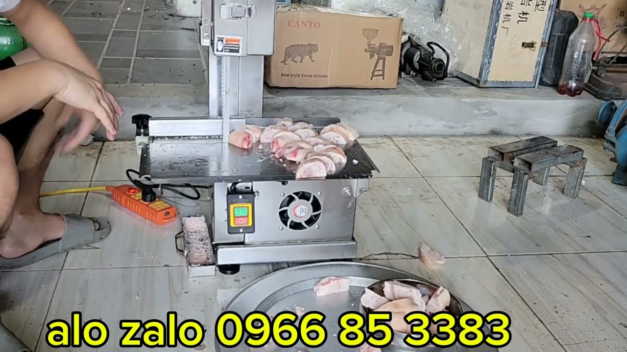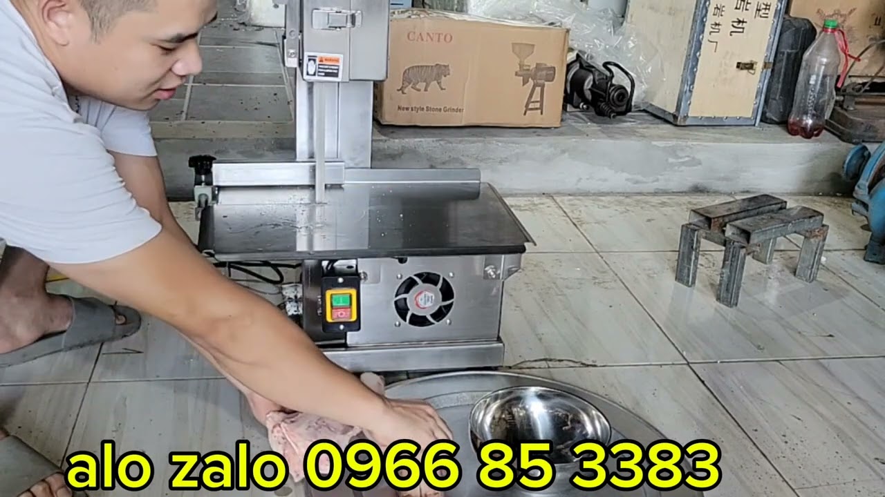 Máy chạy rất êm và khi vận hành chúng ta chỉ cần đưa nguyên liệu vào khu vực bàn cắt, lưỡi cưa sẽ cắt rất nhanh và gọn. Và các bạn đang thấy ở đây là một chiếc máy cưa xương đa năng đang được phân phối khá phổ biến trên thị trường hiện nay. Dòng máy này có công suất khoảng 750W và thuộc phân khúc cao cấp.