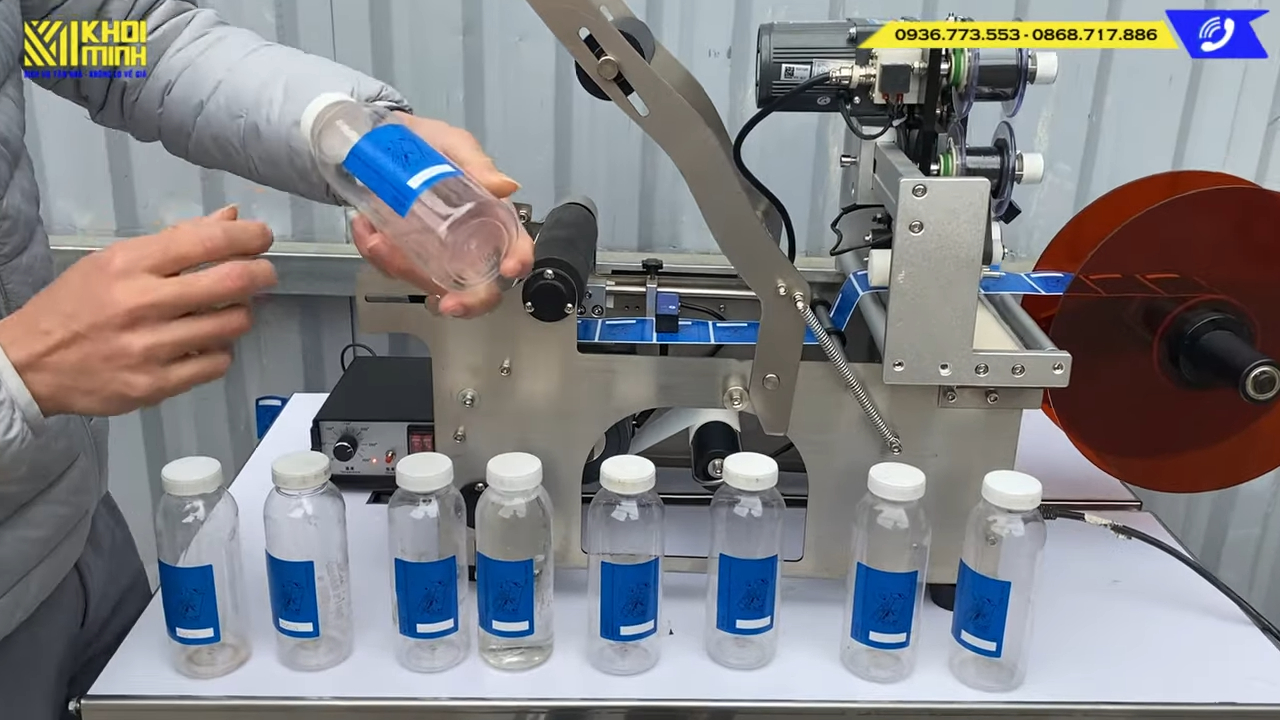 Như chúng ta đã biết, hầu hết các sản phẩm tiêu dùng dạng chai, lọ trên thị trường đều có nhãn dán trên thân chai. Những nhãn dán này giúp người tiêu dùng dễ dàng nhận biết các thông tin quan trọng như tên sản phẩm, thành phần, thương hiệu, nguồn gốc xuất xứ, cũng như ngày sản xuất và hạn sử dụng. Vì vậy việc dán nhãn không chỉ giúp sản phẩm trông chuyên nghiệp hơn mà còn giúp khách hàng tin tưởng hơn khi lựa chọn sản phẩm. Điện Máy Khôi Minh đã giới thiệu đến quý vị và các bạn máy dán nhãn chai tròn MT-50.
