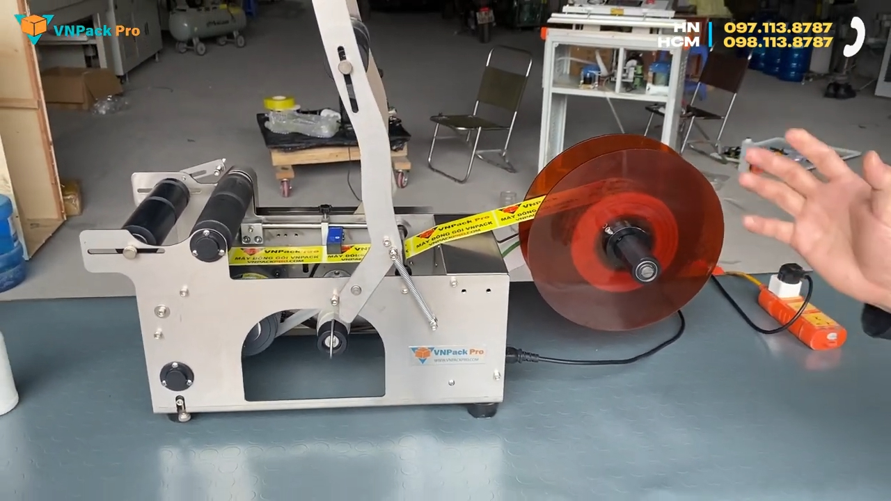 Về khả năng làm việc, máy dán nhãn BT50 là dòng máy bán tự động, chuyên dùng cho các loại chai tròn. Tốc độ dán nhãn có thể đạt khoảng 30 đến 50 chai mỗi phút, tuy nhiên tốc độ thực tế còn phụ thuộc vào thao tác của người vận hành. Khi sử dụng máy, trước tiên chúng ta sẽ lắp cuộn tem nhãn vào đúng vị trí và điều chỉnh các con lăn sao cho phù hợp với kích thước chai. Sau khi đã căn chỉnh xong, chỉ cần bật công tắc nguồn, đặt chai lên giá đỡ và đẩy nhẹ để chai tiếp xúc với hệ thống con lăn. Khi đó tem nhãn sẽ được dán đều quanh thân chai một cách chính xác và nhanh chóng. Nếu thay đổi sang loại chai có đường kính lớn hơn, người dùng chỉ cần điều chỉnh lại vị trí các con lăn hoặc ốc cố định để phù hợp với kích thước mới. Việc điều chỉnh này khá đơn giản và chỉ mất vài phút là có thể hoàn thành.