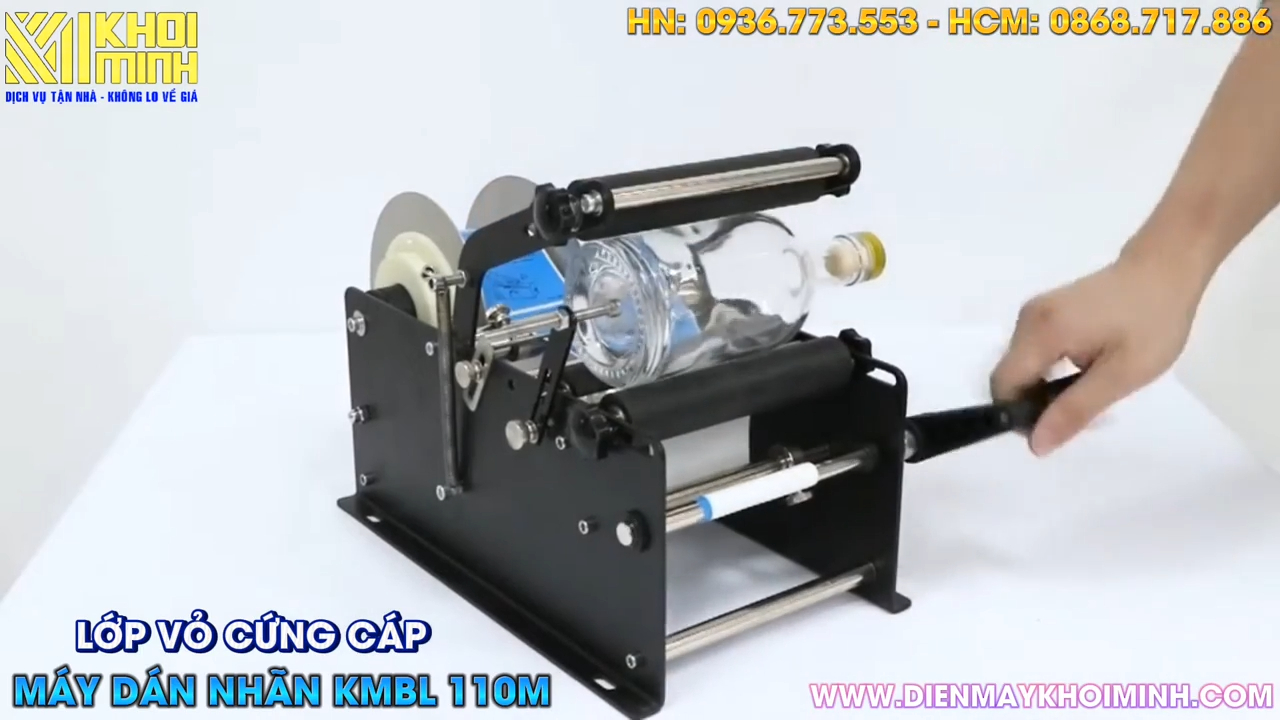 Thông thường, hầu hết các sản phẩm hàng hóa trên thị trường đều được dán nhãn thông tin và logo để người tiêu dùng có thể dễ dàng nhận biết nguồn gốc, chất lượng cũng như thương hiệu của sản phẩm. Để thực hiện công việc này một cách nhanh chóng và chuyên nghiệp, các doanh nghiệp thường sử dụng máy dán nhãn. Một trong những dòng máy được nhiều cơ sở sản xuất lựa chọn hiện nay là máy dán nhãn chai tròn KMBL110M. Đây là dòng máy dán tem nhãn bán tự động, sử dụng tay quay thủ công, chuyên dùng để dán nhãn cho các loại chai, hũ, lọ có dạng hình tròn. Máy có khả năng điều chỉnh linh hoạt để phù hợp với nhiều đường kính chai khác nhau cũng như nhiều kích thước tem nhãn. Với mức chi phí đầu tư hợp lý nhưng hiệu quả làm việc cao, đây là một trong những mẫu máy rất đáng sở hữu cho các cơ sở sản xuất quy mô nhỏ và vừa.