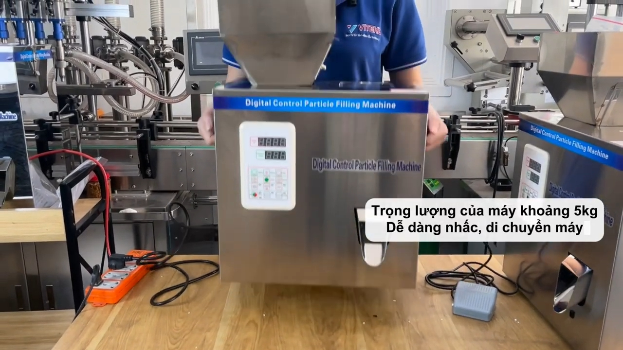 Đây là mẫu máy định lượng tự động do đội ngũ kỹ thuật phát triển với thiết kế hai đầu cân, giúp tăng độ chính xác và nâng cao năng suất làm việc. Hệ thống có tốc độ cân nhanh, thời gian mỗi lần cân có thể đạt khoảng 10 giây cho một chu trình, giúp tối ưu thời gian sản xuất. Màn hình hiển thị được thiết kế đơn giản, dễ sử dụng và dễ quan sát trong quá trình vận hành.
