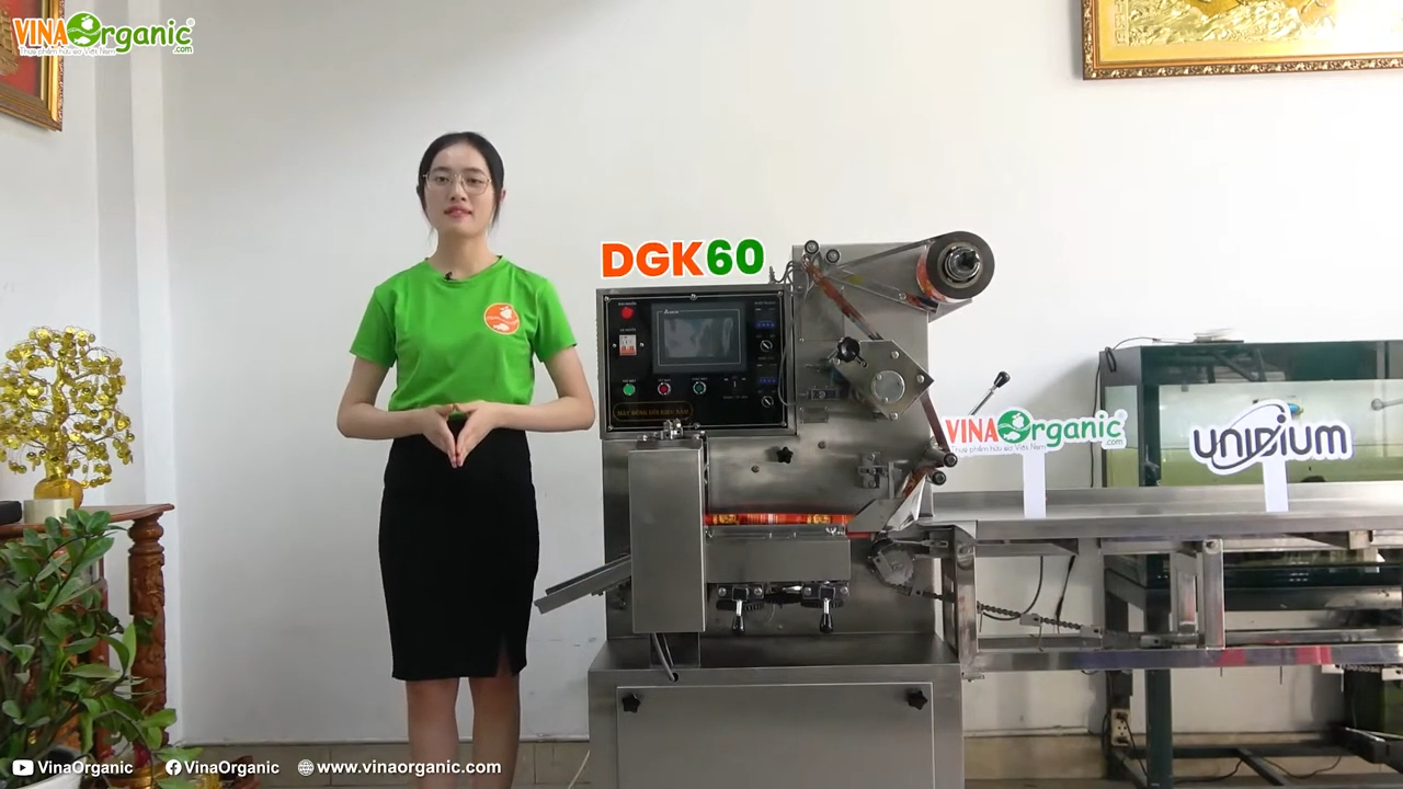 Nếu các bạn đang kinh doanh những sản phẩm như bánh, kẹo và đang tìm kiếm một chiếc máy đóng gói tự động để nâng cao năng suất sản xuất, thì hôm nay mình sẽ giới thiệu đến các bạn một thiết bị rất phù hợp – đó là máy đóng gói dạng thanh tự động model DGK60. Trước khi cùng mình tìm hiểu chi tiết về chiếc máy này, các bạn đừng quên đăng ký kênh và nhấn chuông thông báo để không bỏ lỡ những video mới nhất từ Vinal Organic nhé.