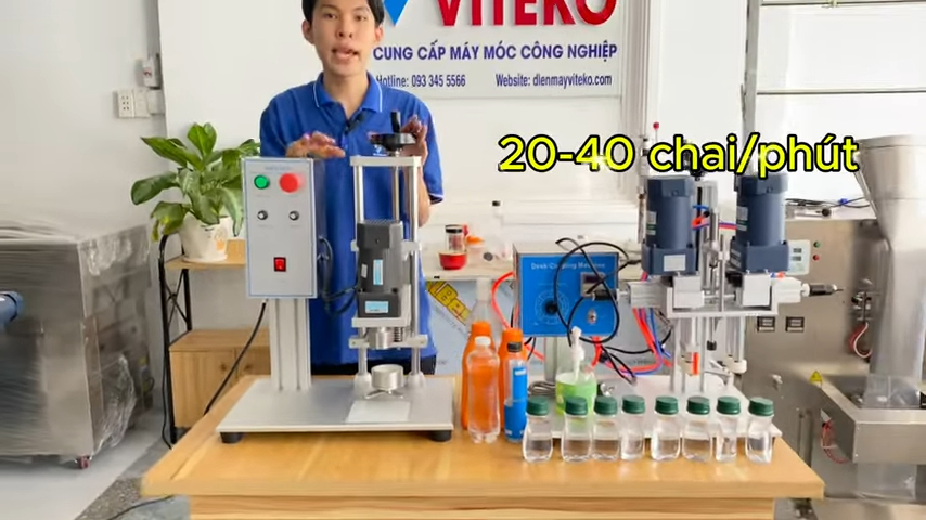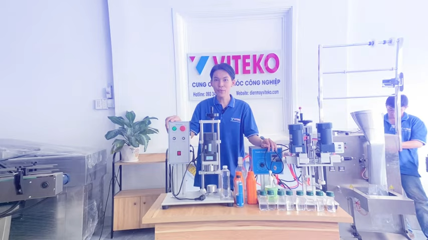 Xin chào quý vị, chào mừng đến với VTECO. Có bao giờ bạn thắc mắc những chiếc nắp chai của nước ngọt, nước suối hay chai dầu ăn được đóng chặt như thế nào chưa? Hôm nay chúng tôi sẽ giới thiệu đến anh chị một thiết bị rất đáng chú ý, đó là máy đóng nắp chai bán tự động LT450. Đây là dòng máy mà các cơ sở sản xuất không nên bỏ lỡ vì máy vận hành bán tự động, dễ sử dụng và có thể đóng được nhiều loại nắp chai với kích thước từ 10 đến 50 mm. Thiết bị phù hợp cho nhiều loại chai khác nhau như chai nước ngọt, chai nước suối, chai nước mắm hoặc các loại chai nhựa trong ngành thực phẩm và đồ uống. Trong video hôm nay, chúng tôi sẽ chia sẻ với anh chị về công suất, cấu tạo, cách vận hành thực tế cũng như những lợi ích khi đầu tư máy đóng nắp chai LT450 cho cơ sở sản xuất của mình.