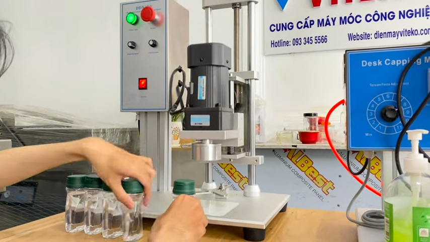 Sau khi tìm hiểu về cấu tạo, chúng ta sẽ đến phần vận hành máy. Trước tiên người dùng cần điều chỉnh chiều cao của đầu đóng nắp sao cho phù hợp với chiều cao của chai. Sau đó đặt chai vào vị trí cố định, bật máy và nhấn nút khởi động. Khi máy hoạt động, đầu siết nắp sẽ tự động hạ xuống và vặn chặt nắp chai. Sau khi hoàn thành, nắp chai sẽ được siết chặt và đảm bảo độ kín. Với công suất hoạt động mạnh mẽ, máy giúp quá trình đóng nắp chai diễn ra nhanh chóng và ổn định, tiết kiệm thời gian và nhân công.