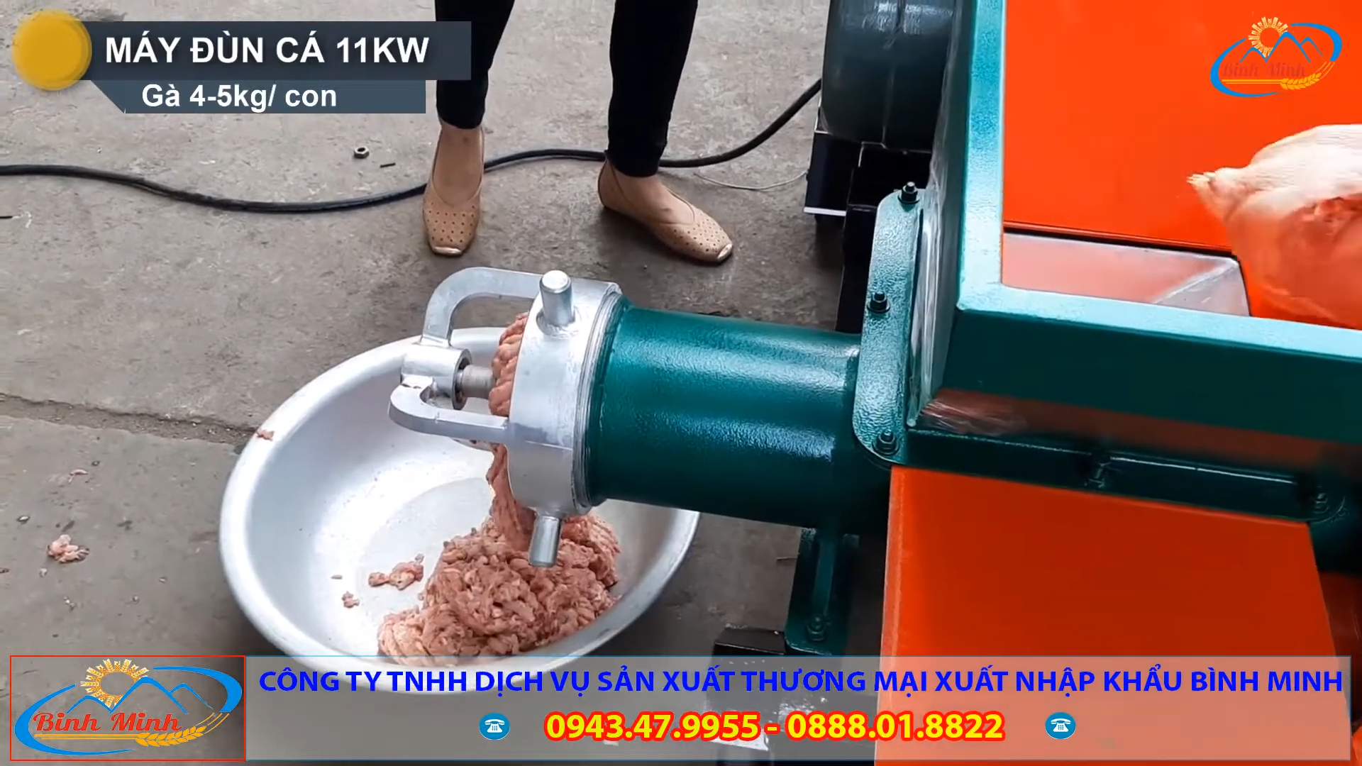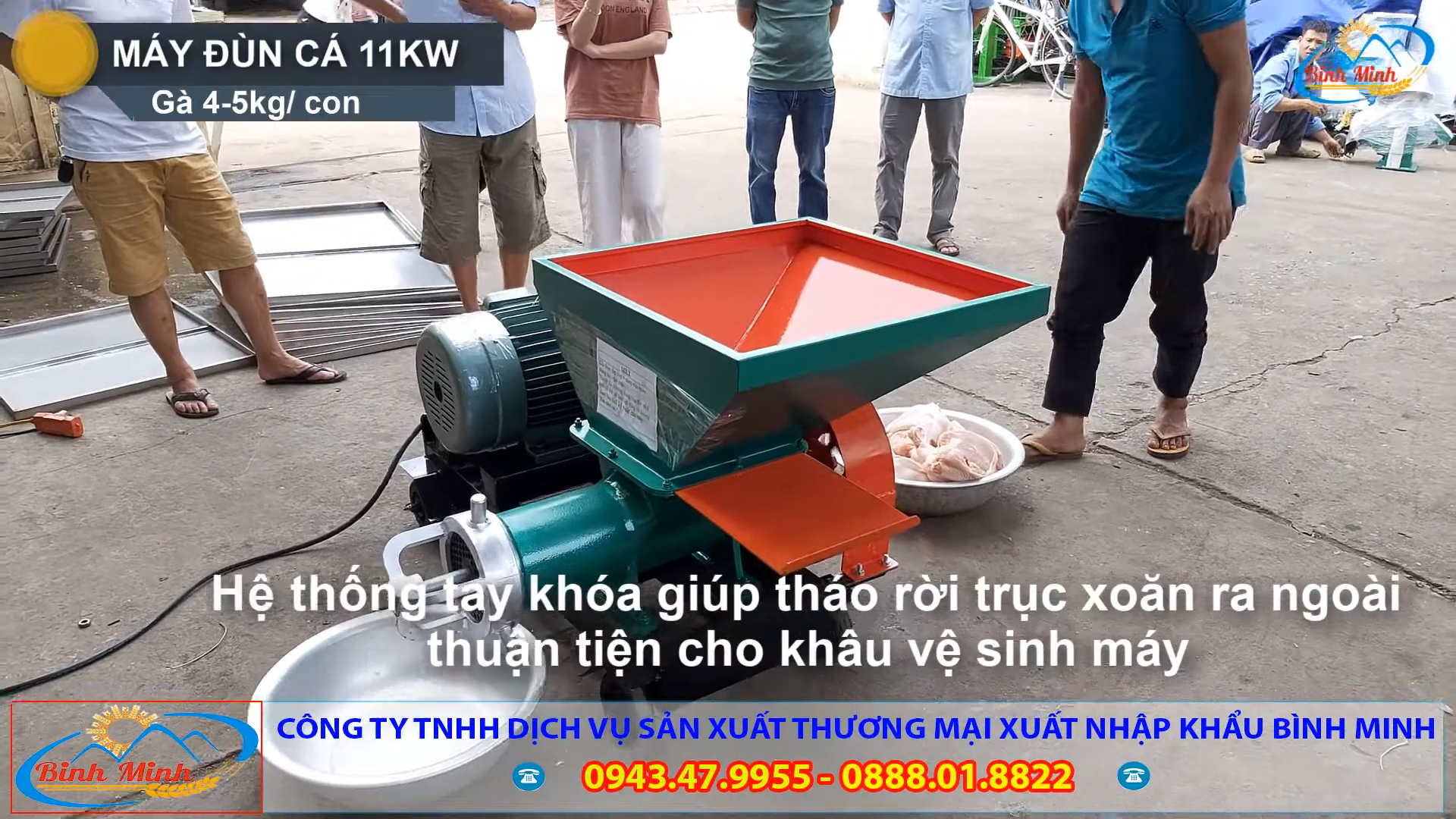 Máy đùn cá 11 kilowatt được áp dụng công nghệ hiện đại có khả năng đùn nhuyễn đa dạng các loại nguyên liệu như ngan, gà, vịt nguyên con với cân nặng từ 4–5kg mỗi con chỉ trong thời gian ngắn, ngoài ra còn có thể xử lý cua, cá, ốc, rau kết hợp với bột cá để đùn ra hỗn hợp dùng làm thức ăn chăn nuôi. Nhờ khả năng xử lý linh hoạt nhiều loại nguyên liệu, thiết bị giúp bà con tận dụng tối đa nguồn nguyên liệu sẵn có, giảm chi phí sản xuất và chủ động nguồn thức ăn cho vật nuôi. Máy được thiết kế đơn giản và vận hành hoàn toàn tự động, người dùng chỉ cần cắm điện và cho nguyên liệu vào là máy sẽ tự động đùn nhuyễn nguyên liệu nhanh chóng.