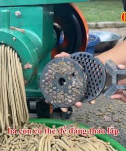 Trong quá trình hoạt động, hệ thống trục nghiền của máy sẽ có nhiệm vụ nghiền nhỏ nguyên liệu như ếch, cá, xương hoặc các loại phụ phẩm khác thành dạng nhuyễn và mịn. Sau khi nguyên liệu được nghiền nhỏ, phần đầu đùn của máy sẽ tiến hành đùn hỗn hợp ra ngoài. Thiết kế đầu đùn thông minh giúp người dùng có thể dễ dàng tháo lắp cũng như thay đổi kích thước đầu đùn từ 6 ly, 8 ly đến 10 ly để tạo ra thành phẩm có kích thước khác nhau, phù hợp với từng loại vật nuôi và từng mô hình chăn nuôi của bà con.