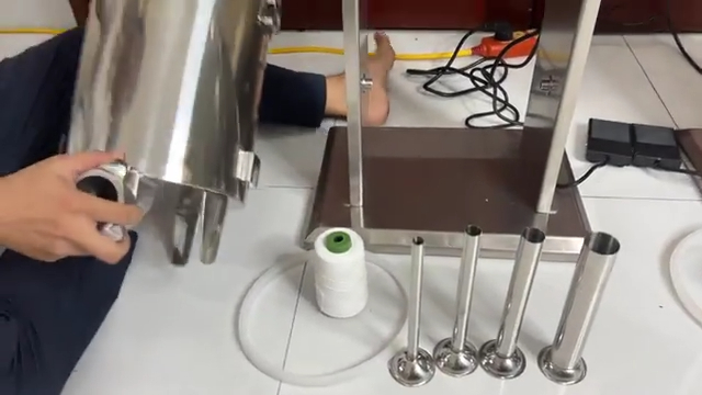 Khi mua máy, người dùng sẽ được trang bị 4 đầu ống nhồi với các kích thước khác nhau để phù hợp với từng loại sản phẩm. Ví dụ như đầu nhỏ có thể dùng cho các loại ruột nhỏ như lòng dê, còn đầu lớn hơn sẽ dùng để làm xúc xích hoặc lạp xưởng. Ngoài ra, máy còn có một ron dự phòng đi kèm để thay thế khi cần thiết, giúp đảm bảo máy luôn hoạt động ổn định trong thời gian dài.