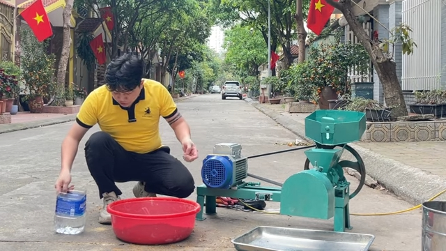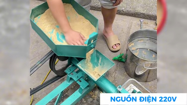 Trước khi bắt đầu, bà con cần trộn đều nguyên liệu để có được hỗn hợp cám hoàn hảo. Sau đó, chỉ cần bật máy và cho một ít nước vào phần khuôn ép. Máy hoạt động rất êm, không gây tiếng ồn lớn, giúp việc sản xuất trở nên dễ dàng và không làm phiền đến công việc khác.