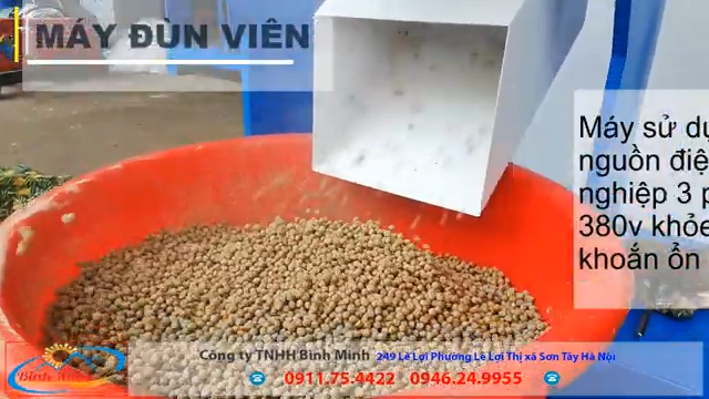 Máy ép cám viên của công ty Bình Minh được thiết kế hiện đại, với những tính năng vượt trội giúp tạo ra viên cám nổi dành cho thủy hải sản như cá trắng, cá ba sa, cá koi, và cám chín dành cho gia súc như lợn, gà, dê, bò. Máy còn có thể sản xuất cám nhỏ từ 1-2 ly cho tôm, lươn, và các loại động vật khác. Máy có thể sử dụng nhiều nguyên liệu dạng bột như bột mì, bột ngô, bột cá, bột cám gạo, bột đậu nành, và nhiều loại bột khác.