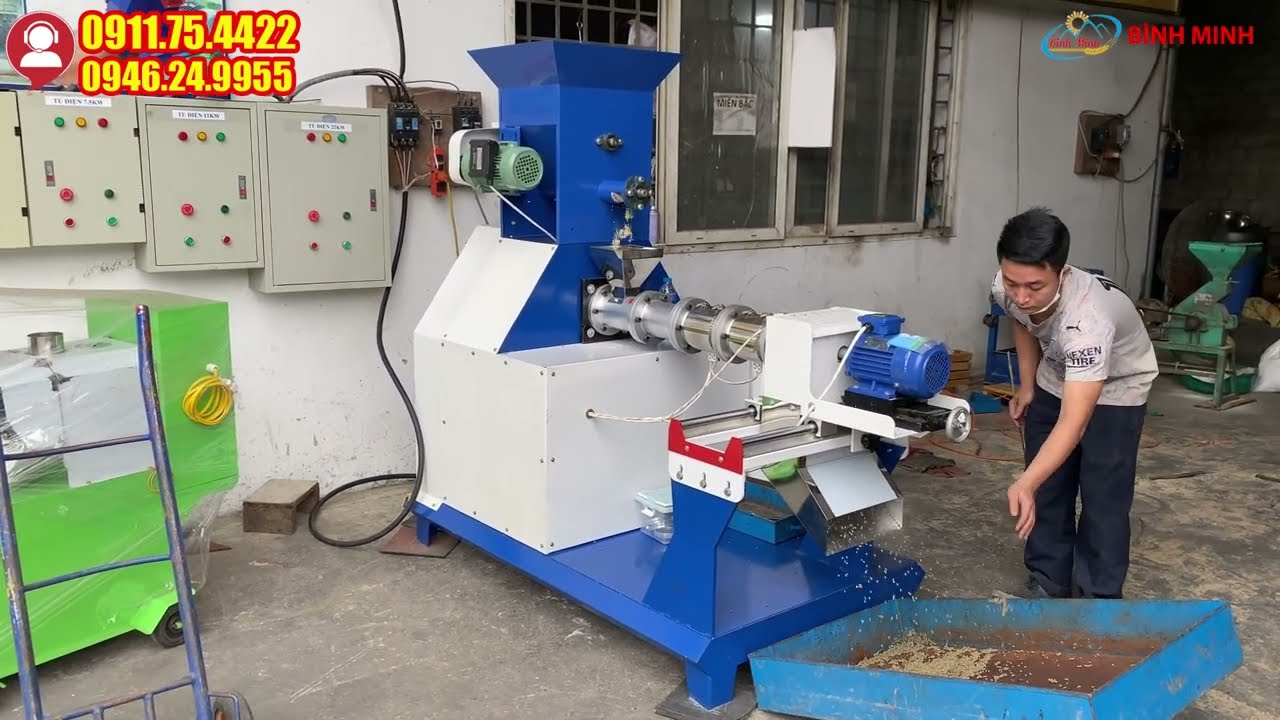 Máy được trang bị hệ thống bảng điều khiển thông minh, với các nút bấm dễ sử dụng, giúp người dùng có thể điều khiển máy một cách dễ dàng để sản xuất các loại cám viên với đa dạng kích thước khác nhau. Cách thức hoạt động của máy là nguyên liệu sẽ được đưa vào bộ phận cấp liệu, sau đó trục ép sẽ từ từ đùn nguyên liệu qua bộ phận làm nóng, tạo ra viên cám có hình dạng đều đặn, đảm bảo chất lượng.