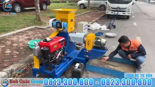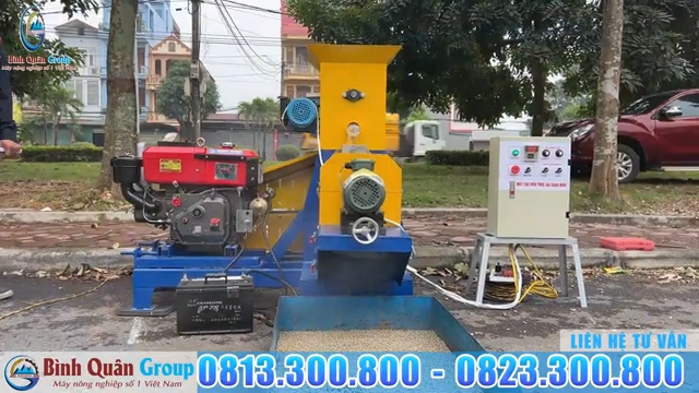 Xin chào quý vị và bà con, trong video ngày hôm nay, Bình Quân Group sẽ thực hiện bàn giao máy đùn viên 40K đầu nổ cho một khách hàng tại xưởng sản xuất của công ty. Ngay bây giờ, kỹ thuật viên sẽ chạy thử máy trước khi vận chuyển đến nhà khách hàng. Với trường hợp không có nguồn điện ba pha tại khu vực chăn nuôi cá, thay vì phải đầu tư vào máy ép cám viên nổi ba pha và hệ thống điện phức tạp, máy đùn viên 40K sử dụng đầu nổ đã được khách hàng lựa chọn.