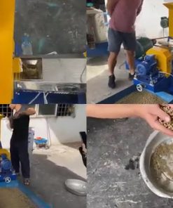 Và đây chính là thành phẩm cám cá nổi được sản xuất từ máy đùn viên thức ăn chăn nuôi 4M. Ngay bây giờ, kỹ thuật viên sẽ tiến hành một bước quen thuộc, đó là thả cám vào nước để kiểm tra độ nổi của viên cám. Như quý vị có thể thấy, viên cám nổi khá tốt trên mặt nước.
