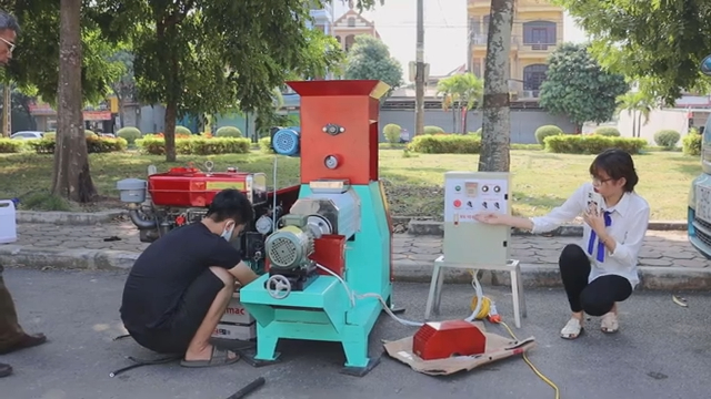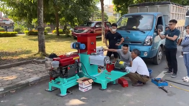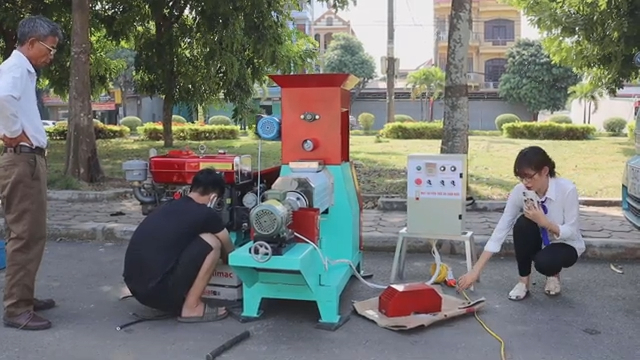 Quá trình bàn giao máy cho khách hàng tại Cần Thơ được thực hiện trực tiếp tại xưởng sản xuất, với việc các kỹ thuật viên hướng dẫn khách hàng vận hành máy. Máy ép cám viên nổi này được thiết kế với tủ điều khiển dễ sử dụng, có các công tắc, đèn báo rõ ràng để giúp khách hàng dễ dàng điều chỉnh máy để sản xuất cám viên với kích thước phù hợp cho từng loại vật nuôi.