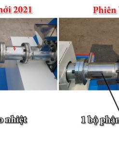 Tiếp theo, Thu Ngân xin giới thiệu đôi nét về máy đùn viên thức ăn chăn nuôi năng suất 150kg/giờ của công ty. Phiên bản này đã được cải tiến và nâng cấp so với dòng máy ra mắt trước đó. Cụ thể, ở phiên bản tháng 5/2021, máy được thiết kế với khung máy lớn hơn, chắc chắn hơn và trọng lượng nặng hơn so với phiên bản 5/2020. Đặc biệt, hệ thống ống đùn cám được nâng cấp với số lượng ống nhiều gấp đôi và chiều dài ống lớn hơn, nhờ đó giúp tăng năng suất đáng kể. Chính vì vậy, máy có thể đạt năng suất gần gấp đôi so với dòng máy đùn viên được giới thiệu vào năm 2020.