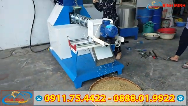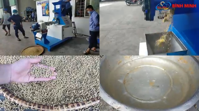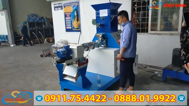Máy đùn viên được các kỹ sư của Công ty Bình Minh nghiên cứu và chế tạo thành công, đáp ứng nhu cầu chế biến thức ăn chăn nuôi dạng viên từ nhiều loại nguyên liệu như bột ngô, cám gạo, bột đậu tương, bột cá, bột sắn, dầu cá và nhiều loại phụ phẩm nông nghiệp khác. Cám viên sau khi ép chín 100% sẽ đảm bảo đầy đủ dinh dưỡng cho vật nuôi. Máy có thể làm cám nổi cho cá, tôm, ếch hoặc cám viên cho gà, vịt, chim và lợn. Máy hoạt động với nguồn điện 3 pha 380V, sử dụng động cơ chính công suất 22kW. Hệ thống bảng điều khiển được thiết kế hiện đại, dễ sử dụng, chỉ cần một người vận hành là có thể điều khiển toàn bộ quá trình sản xuất. Với những thao tác đơn giản, máy có thể ép ra từ 150 đến 200 kg cám viên mỗi giờ. Máy được trang bị nhiều mặt sàng với kích thước khác nhau, phù hợp với từng loại vật nuôi. Phễu nạp nguyên liệu được thiết kế rộng, có cánh đảo giúp nguyên liệu được trộn đều và cấp xuống buồng ép ổn định.