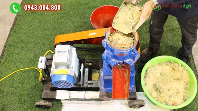 Phần cửa nạp nguyên liệu phía trên được thiết kế rộng và sâu, bà con có thể cho nhiều loại nguyên liệu vào cùng lúc như bột ngô, cám gạo, cá tạp, ốc, rau xanh hoặc các loại phụ phẩm nông nghiệp khác. Một điểm rất tiện lợi nữa là máy được trang bị công tắc an toàn ngay bên hông, bà con chỉ cần kết nối với nguồn điện gia đình 220V, gạt công tắc là máy có thể hoạt động ngay, rất đơn giản và an toàn khi sử dụng. Sau khi dùng xong, các bộ phận của máy cũng có thể tháo lắp dễ dàng để vệ sinh, giúp máy luôn sạch sẽ và bền bỉ.