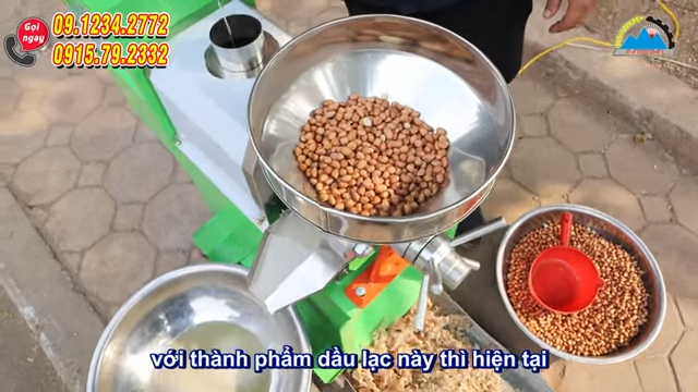 Máy ép dầu lạc là thiết bị giúp sản xuất dầu thực vật sạch một cách nhanh chóng và dễ dàng, chỉ cần một người vận hành. Máy được thiết kế với phễu nạp nguyên liệu làm hoàn toàn từ inox nên đảm bảo vệ sinh an toàn thực phẩm, đồng thời giúp người dùng dễ dàng cho nguyên liệu vào máy. Mỗi lần nạp có thể cho từ khoảng 3 đến 5kg nguyên liệu tùy loại. Với thiết kế nhỏ gọn và tiện lợi, máy ép dầu công suất khoảng 25kg mỗi giờ phù hợp cho những người muốn kinh doanh ép dầu thuê hoặc sản xuất dầu thực vật sạch quy mô nhỏ.