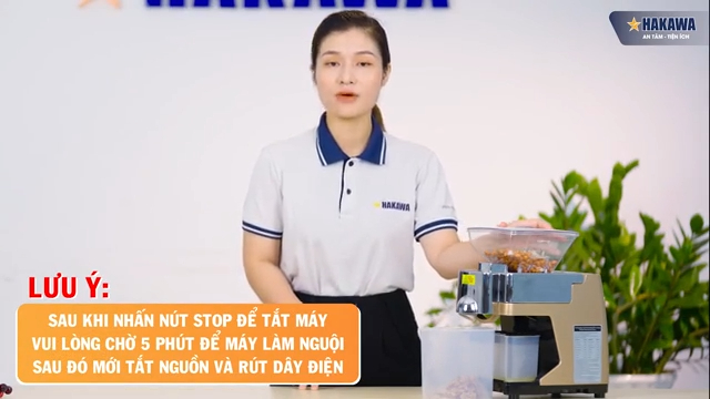 Trong quá trình sử dụng, nếu bạn muốn dừng máy lại, chỉ cần nhấn nút stop. Máy sẽ tự động quay ngược lại để đẩy nguyên liệu còn lại ra ngoài. Khi bạn muốn tiếp tục, chỉ cần nhấn nút run lần nữa. Lưu ý rằng sau khi dừng máy, bạn cần để máy nguội trong khoảng 5 phút trước khi tắt nguồn để đảm bảo an toàn và kéo dài tuổi thọ của máy.