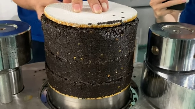 Sau khi ép, phần bã được nén rất khô chứng tỏ lượng dầu đã được chiết xuất tối đa. Phần bã này vẫn còn nhiều protein và chất xơ nên có thể tận dụng làm thức ăn chăn nuôi hoặc phân bón hữu cơ, giúp tối ưu nguyên liệu và giảm lãng phí trong quá trình sản xuất.