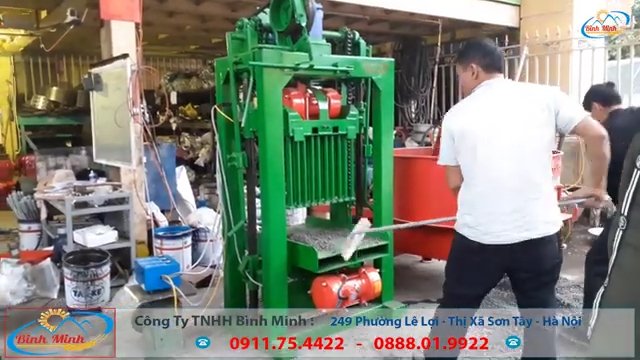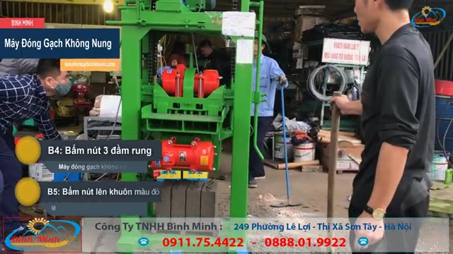 Quy trình vận hành máy khá đơn giản. Bước đầu tiên là bấm nút đầm rung lần thứ nhất để dàn đều nguyên liệu trong khuôn. Bước tiếp theo kéo tay phanh để cố định khuôn và kéo tay cò để định hình viên gạch. Sau đó bấm nút đầm rung lần thứ hai để nén chặt nguyên liệu. Tiếp theo bấm nút nâng khuôn lên để lấy gạch ra ngoài. Cuối cùng sử dụng xe đẩy để vận chuyển gạch ra khu vực phơi. Ví dụ với khuôn 10 viên, máy sẽ tạo ra các viên gạch có kích thước phổ biến như chiều dài khoảng 14 cm, chiều rộng khoảng 10 cm và chiều cao khoảng 25 cm. Các viên gạch được ép chặt, bề mặt đẹp và có độ bền cao, rất phù hợp cho nhiều công trình xây dựng.