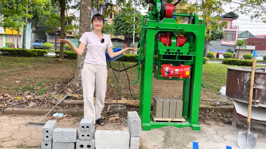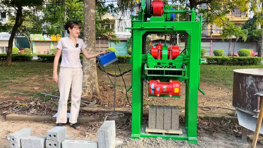 Trong nội dung ngày hôm nay, chúng ta sẽ cùng tìm hiểu và kiểm tra dòng máy ép gạch không nung – thiết bị có khả năng tạo ra những viên gạch xây dựng chắc chắn từ các nguyên liệu như đá mạt, sỏi, cát và xi măng được trộn đều theo tỷ lệ phù hợp. Máy ép gạch không nung có thể sản xuất nhiều loại gạch khác nhau với các loại khuôn đa dạng như khuôn 4 viên, 6 viên, 8 viên, 10 viên, 12 viên, 16 viên hoặc 18 viên. Ngoài ra còn có thể sản xuất gạch có lỗ hoặc gạch đặc, tùy thuộc vào nhu cầu sử dụng của từng công trình. Trong chương trình hôm nay, chúng ta sẽ tiến hành ép thử loại gạch hai lỗ với khuôn 12 viên, đây là loại gạch được sử dụng phổ biến trong xây dựng tường nhà, tường rào hoặc các bể chứa.