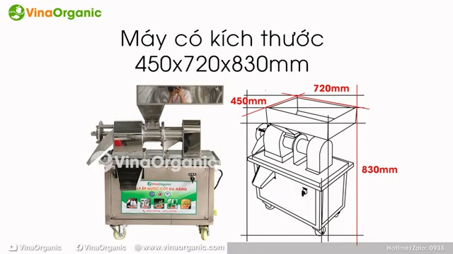Dòng máy ép nước cốt đa năng này để xem vì sao thiết bị lại được nhiều cơ sở sản xuất lựa chọn đến vậy. Trước hết, xét về thiết kế tổng thể thì máy có kích thước khá gọn gàng nhưng vẫn mang lại cảm giác chắc chắn và chuyên nghiệp. Kích thước máy khoảng 450 x 720 x 830 mm nên người dùng có thể dễ dàng đặt máy trong khu vực sản xuất, quầy chế biến hoặc xưởng làm thực phẩm mà không chiếm quá nhiều diện tích.