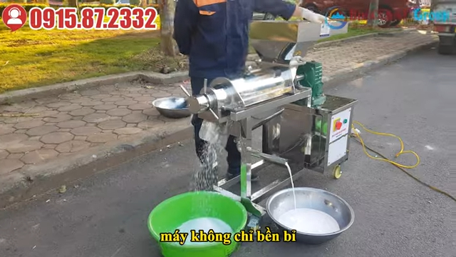 Trong khi đó, máy ép nước cốt dừa công nghiệp lại hướng đến các cơ sở sản xuất vừa và nhỏ với nhu cầu sản lượng vừa phải nhưng vẫn đảm bảo hiệu quả cao. Dòng máy này có công suất khoảng 2,2kW và có thể đạt năng suất khoảng 100kg nguyên liệu mỗi giờ. Tuy năng suất thấp hơn so với dòng máy liên hoàn, nhưng máy vẫn đáp ứng tốt nhu cầu sản xuất ổn định tại các cửa hàng, cơ sở chế biến thực phẩm hoặc các đơn vị kinh doanh nước cốt dừa.