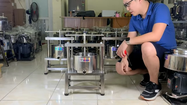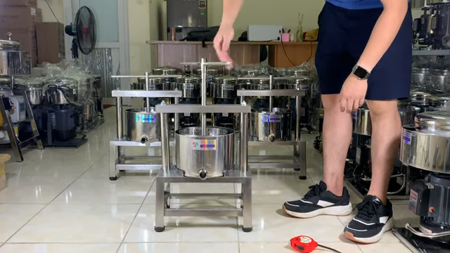 Về kích thước, máy có chiều ngang khoảng 35cm, chiều sâu khoảng 30cm và chiều cao khoảng 40cm đến 50cm nếu tính cả tay quay. Trọng lượng máy khoảng 7kg nên người dùng có thể dễ dàng di chuyển hoặc đặt máy ở nhiều vị trí khác nhau trong khu vực chế biến.