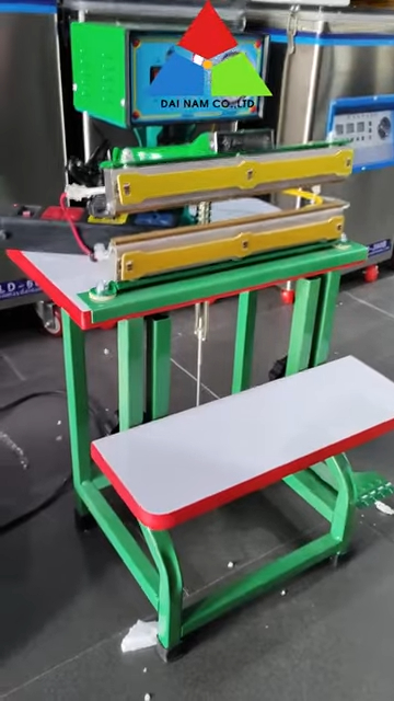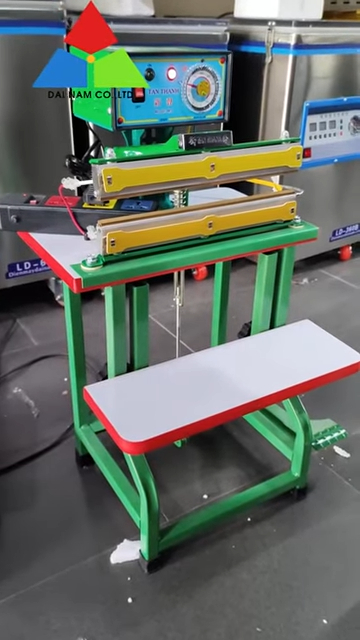 Về cách sử dụng, thao tác của máy khá đơn giản. Người dùng chỉ cần đặt miệng túi vào vị trí thanh hàn, sau đó dùng chân nhấn bàn đạp để kích hoạt quá trình hàn. Máy sẽ gia nhiệt và ép kín miệng túi trong vài giây, tạo ra đường hàn chắc chắn và thẩm mỹ.