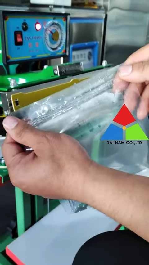 Khi thử nghiệm thực tế với túi đựng sản phẩm dạng lỏng, đường hàn tạo ra rộng khoảng 10mm, rất to và chắc chắn. Sau khi hàn xong, miệng túi được ép kín hoàn toàn, không bị bung và đảm bảo giữ sản phẩm bên trong an toàn.