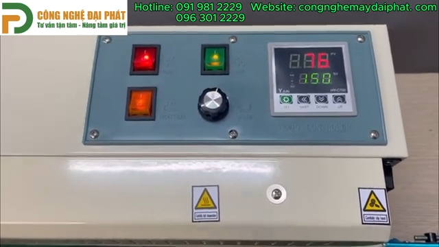Bên cạnh đó, máy còn được trang bị bộ điều khiển nhiệt độ giúp cài đặt nhiệt phù hợp với từng loại túi. Khi muốn điều chỉnh nhiệt độ, người dùng nhấn nút cài đặt rồi sử dụng các phím điều hướng để tăng hoặc giảm mức nhiệt mong muốn. Sau khi thiết lập xong, nhấn nút xác nhận để lưu lại thông số và chờ máy gia nhiệt đến mức nhiệt đã cài đặt. Khi nhiệt độ đạt yêu cầu, máy đã sẵn sàng để tiến hành hàn túi.