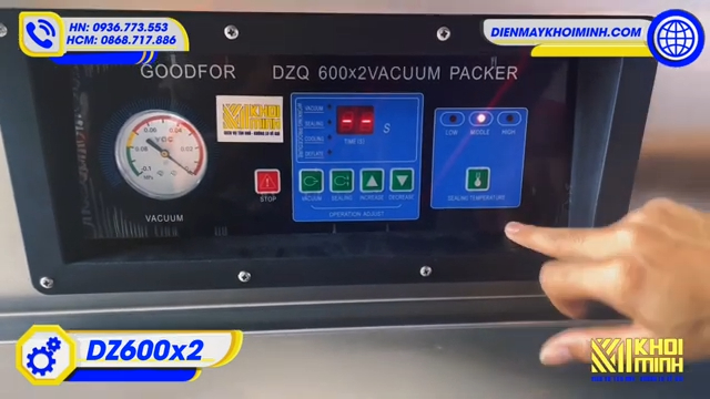 Một điểm nổi bật của máy hút chân không DZ600x2 là máy có 3 chế độ hàn khác nhau gồm thấp, trung bình và cao. Người vận hành chỉ cần nhấn nút để chuyển đổi giữa các chế độ này. Thông thường máy được cài đặt ở mức trung bình, nhưng nếu sử dụng túi dày thì có thể chuyển sang mức cao để tăng nhiệt độ hàn. Ba chế độ này tương ứng với các mức điện áp đầu ra khoảng 30V, 40V và 50V, giúp máy linh hoạt hơn khi đóng gói nhiều loại túi.