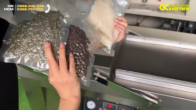 Sau khi cài đặt thời gian hút, người dùng cài đặt thời gian hàn miệng túi, thường khoảng 1,5 giây, nhưng có thể điều chỉnh theo loại túi và nhiệt độ hàn. Tiếp theo, sản phẩm được sắp xếp vào buồng hút sao cho miệng túi nằm trên thanh hàn. Khi đóng nắp, nhấn nhẹ để máy tự hút nắp xuống và bắt đầu vận hành. Trong khi một buồng đang hoạt động, buồng còn lại có thể được chuẩn bị cho chu trình tiếp theo, tối ưu năng suất làm việc.