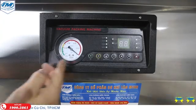 Trên bảng điều khiển của máy hút chân không hai buồng thường có các chức năng như đồng hồ hiển thị áp suất, nút bật tắt máy, nút điều chỉnh thời gian hút, thời gian hàn và thời gian làm mát. Người vận hành có thể tăng hoặc giảm các thông số này để phù hợp với từng loại túi và từng loại sản phẩm cần đóng gói. Ngoài ra, máy còn được trang bị nút dừng khẩn cấp để đảm bảo an toàn trong quá trình vận hành khi cần ngắt máy ngay lập tức.