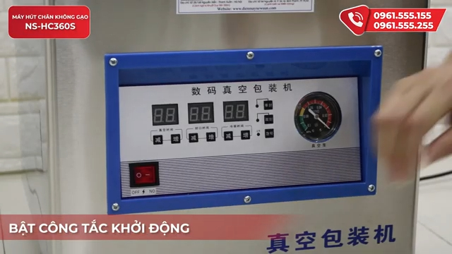 - Khởi động máy để bắt đầu quá trình hút chân không và hàn túi.