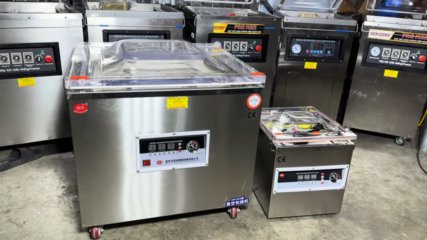 Máy hút chân không công nghiệp dùng để hút và đóng gói thực phẩm đang được sử dụng phổ biến hiện nay. Các dòng máy này thường được dùng trong cơ sở chế biến thực phẩm, cửa hàng kinh doanh đồ khô, hải sản, thịt cá hoặc các đơn vị sản xuất cần đóng gói bảo quản lâu dài. Mức giá của sản phẩm dao động từ 5.500.000 đồng trở lên, tùy thuộc vào kích thước buồng hút, công suất và cấu hình của từng model.