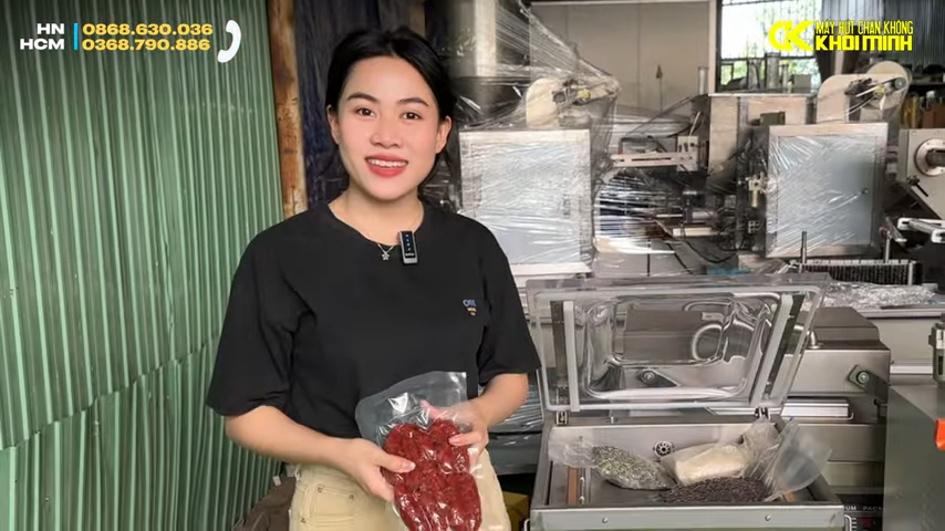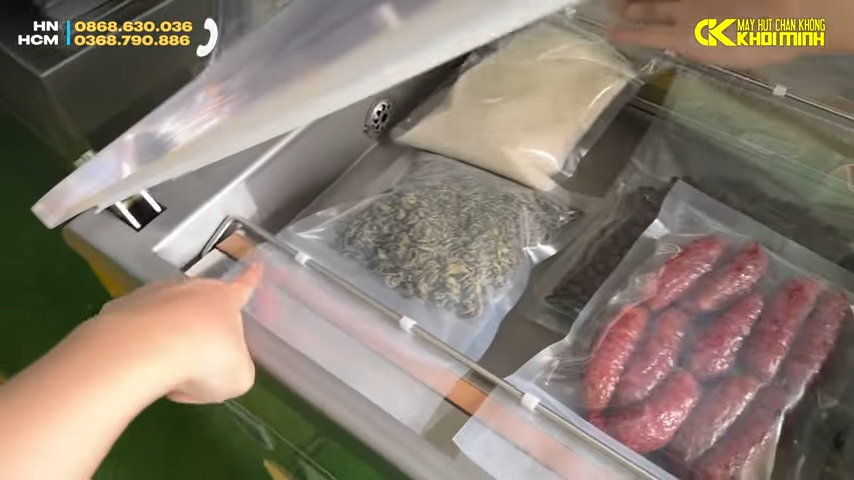 Tiếp theo, đặt sản phẩm vào túi hút chân không và đặt túi vào buồng hút. Đóng nắp máy và khởi động quá trình hút. Trong quá trình này, người dùng có thể quan sát đồng hồ áp suất để theo dõi lực hút. Khi hoàn tất, túi sản phẩm sẽ được hút chân không hoàn toàn, miệng túi được hàn kín và chắc chắn. Máy có thể hút nhiều túi cùng lúc, giúp tiết kiệm thời gian và nâng cao hiệu quả đóng gói.
