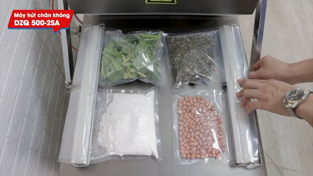 Máy DZQ 500 giúp bảo quản thực phẩm tốt hơn, giảm thiểu quá trình ôi thiu và hư hỏng. Thực phẩm được giữ tươi lâu hơn, tiết kiệm không gian lưu trữ và duy trì giá trị dinh dưỡng cũng như hương vị. Máy phù hợp với nhiều loại thực phẩm, từ thủy sản, nông sản, rau củ sấy khô đến thực phẩm chế biến sẵn.