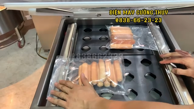 Máy có khả năng hút chặt các loại thực phẩm khác nhau, từ thịt, cá, xúc xích, đồ khô, gạo đến thực phẩm đông lạnh. Sau khi hút chân không, túi được ép chắc, phần mối hàn đều đẹp và kín hoàn toàn, giúp bảo quản thực phẩm tốt hơn, hạn chế oxy hóa và ẩm mốc. Thực phẩm bảo quản trong tủ lạnh sẽ giữ được chất lượng và hương vị lâu dài.