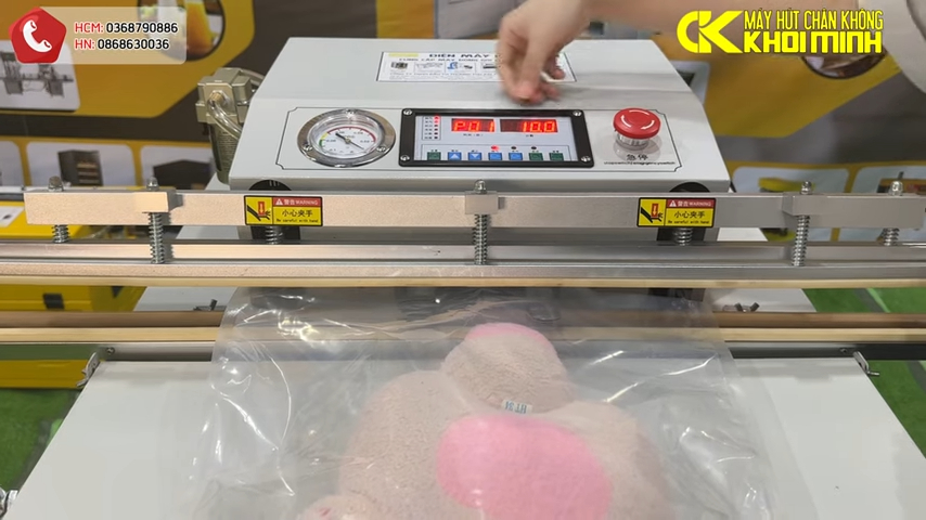 Chức năng hút chân không của máy VS800 rất ấn tượng. Sau khi đặt sản phẩm vào túi và cài đặt thời gian hút chân không (thường là khoảng 10 giây), không khí được hút ra hoàn toàn, đảm bảo độ chân không cao. Đường hàn miệng túi sau khi hút cũng rất đẹp mắt và chắc chắn, ngăn cản hoàn toàn sự xâm nhập của không khí bên ngoài.