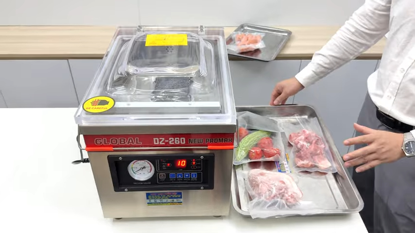 Trải nghiệm máy hút chân không DZ-260 – giải pháp bảo quản thực phẩm tốt nhất hiện nay. Máy hút chân không DZ-260 dòng Promax cao cấp, hàng chính hãng và chất lượng tốt dành cho các cơ sở chế biến thực phẩm nhỏ, cửa hàng thực phẩm, nhà hàng, quán ăn hoặc gia đình có nhu cầu bảo quản thực phẩm. Khi cần bảo quản thực phẩm lâu hơn, hút kiệt chân không để cất trong tủ lạnh, ngăn đông, ngăn mát hoặc đóng gói bày bán thì máy hút chân không DZ-260 là thiết bị cực kỳ hữu ích. Sản phẩm giúp thực phẩm giữ được độ tươi ngon lâu dài, đảm bảo vệ sinh an toàn thực phẩm và mang lại sự chuyên nghiệp cho các cơ sở kinh doanh.