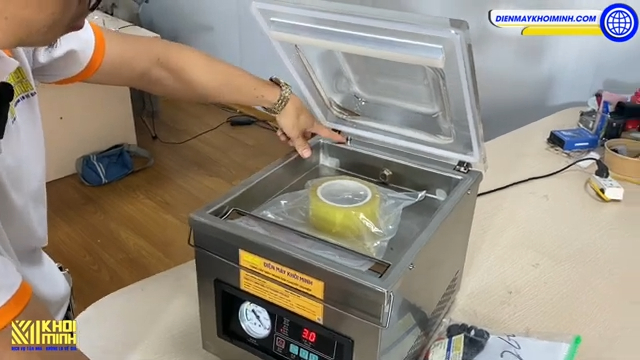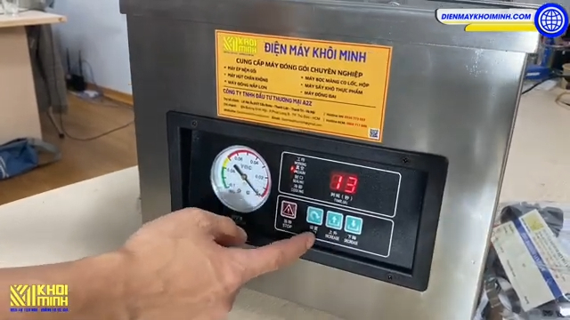 Khi tất cả các thông số đã được cài đặt xong, bạn chỉ cần cho sản phẩm vào trong túi và đặt miệng túi lên thanh hàn. Máy đi kèm một thanh chặn giúp giữ phẳng miệng túi, tránh tình trạng túi bị đè chèn khi hút. Sau đó, bạn chỉ cần đẩy nắp máy để kích hoạt máy hoạt động. Máy sẽ tự động bắt đầu quá trình hút và hàn. Trong quá trình hút, một đồng hồ hiển thị trên màn hình sẽ đếm ngược thời gian hút. Khi đồng hồ chuyển sang màu xanh, tức là thời gian hút đã đạt yêu cầu. Nếu đồng hồ chuyển sang màu vàng, bạn cần tăng thời gian hút để đảm bảo áp suất chân không đạt yêu cầu.