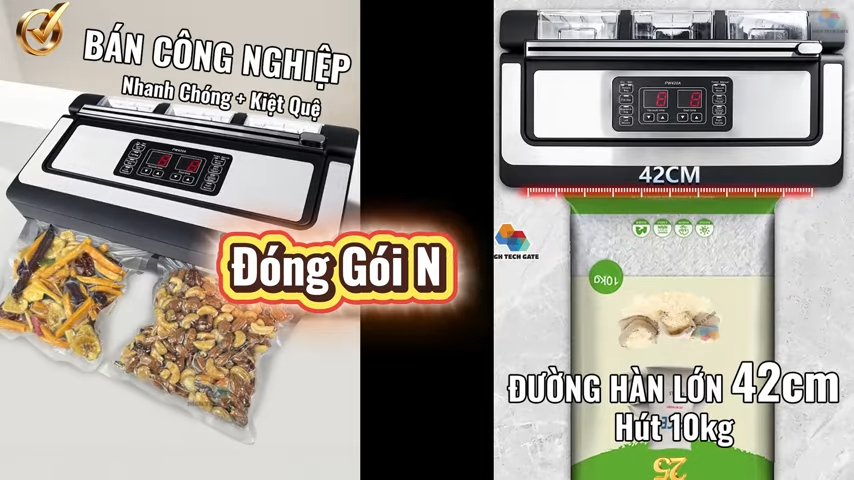 Máy hút chân không HTG P420A bán công nghiệp là giải pháp lý tưởng cho các hộ kinh doanh thực phẩm, đặc biệt là nhà hàng hoặc cơ sở cần hút thực phẩm tươi sống, thực phẩm nhiều dầu mỡ. Thiết bị sở hữu nhiều tính năng vượt trội, bao gồm đường hàn rộng 42 cm và khả năng hút 2 túi cùng lúc, mang đến hiệu quả đóng gói cao, tiết kiệm thời gian và tăng năng suất làm việc.