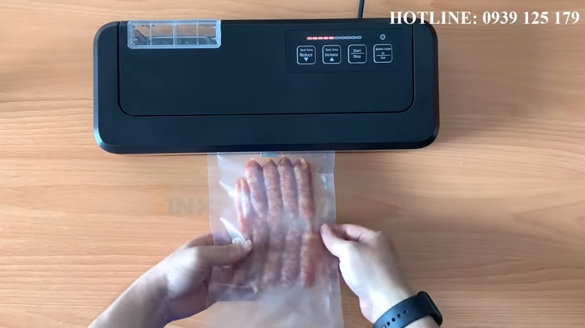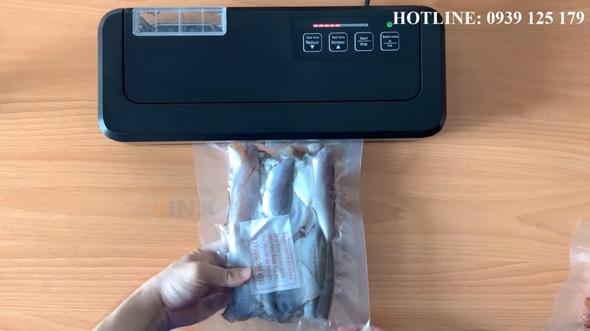 Sau khi cài đặt thông số phù hợp, người dùng đặt miệng túi lên thanh hàn và kéo phẳng mép túi để đường hàn được kín và đẹp. Khi đóng nắp máy, hệ thống sẽ tự động bắt đầu quá trình hút chân không. Khi không khí bên trong túi đã được hút ra gần hết, máy sẽ chuyển sang bước hàn miệng túi. Thời gian hàn phụ thuộc vào độ dày của túi nilon, nếu túi mỏng thì thời gian hàn khoảng 1,5 đến 2 giây, còn với túi dày thì cần tăng thời gian hàn để đảm bảo đường hàn chắc chắn và không bị hở. Sau khi hoàn tất chu trình hút và hàn, máy sẽ tự động mở nắp để người dùng lấy sản phẩm ra, giúp quá trình đóng gói diễn ra nhanh chóng và thuận tiện.