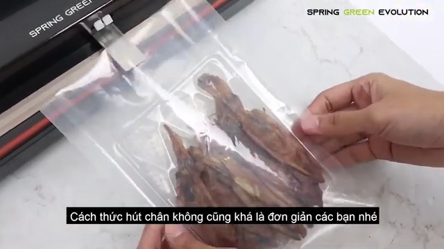 Với các dòng máy bán công nghiệp hoặc máy hút chân không không kén túi, người dùng cũng thao tác khá đơn giản. Sau khi cài đặt thời gian hút và thời gian hàn phù hợp, bạn đặt túi vào máy, dùng tay giữ hoặc đóng nắp máy thật chặt để đảm bảo quá trình hút diễn ra hiệu quả. Khi lượng chân không đạt yêu cầu, máy sẽ chuyển sang chế độ hàn miệng túi. Sau khi hàn xong, túi thực phẩm sẽ được đóng kín hoàn toàn, giúp bảo quản lâu hơn và tránh bị oxy hóa. Đường hàn thường có độ rộng vài milimet giúp túi chắc chắn, hạn chế rò rỉ không khí.