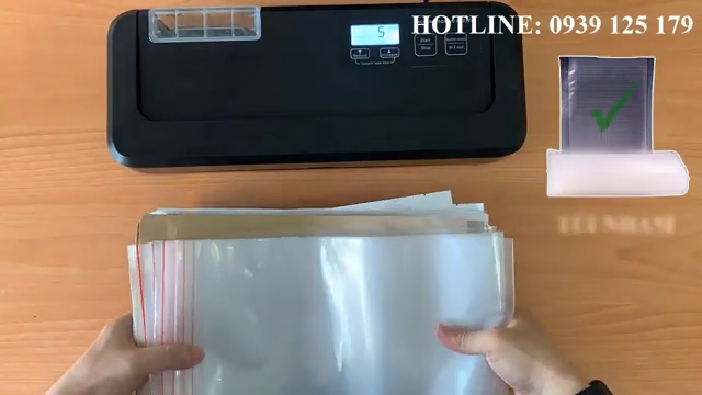 Khi máy hoạt động, không khí trong túi sẽ được hút ra ngoài. Sau khi hết thời gian hút đã cài đặt, máy sẽ tự động chuyển sang chế độ hàn miệng túi. Khi quá trình hàn hoàn tất, người dùng chỉ cần mở nắp máy và lấy túi thực phẩm ra. Thành phẩm sau khi hút chân không sẽ có đường hàn phẳng, chắc chắn và không bị rò rỉ khí.